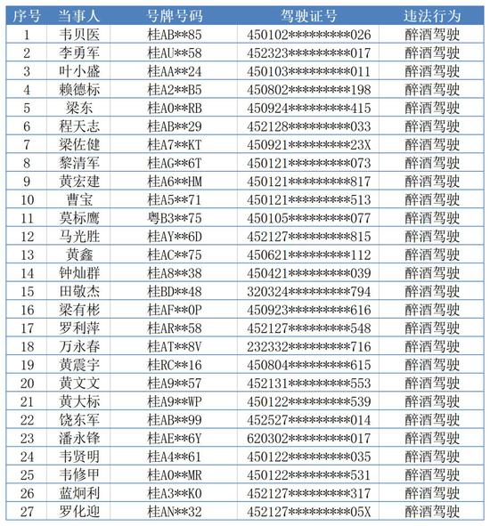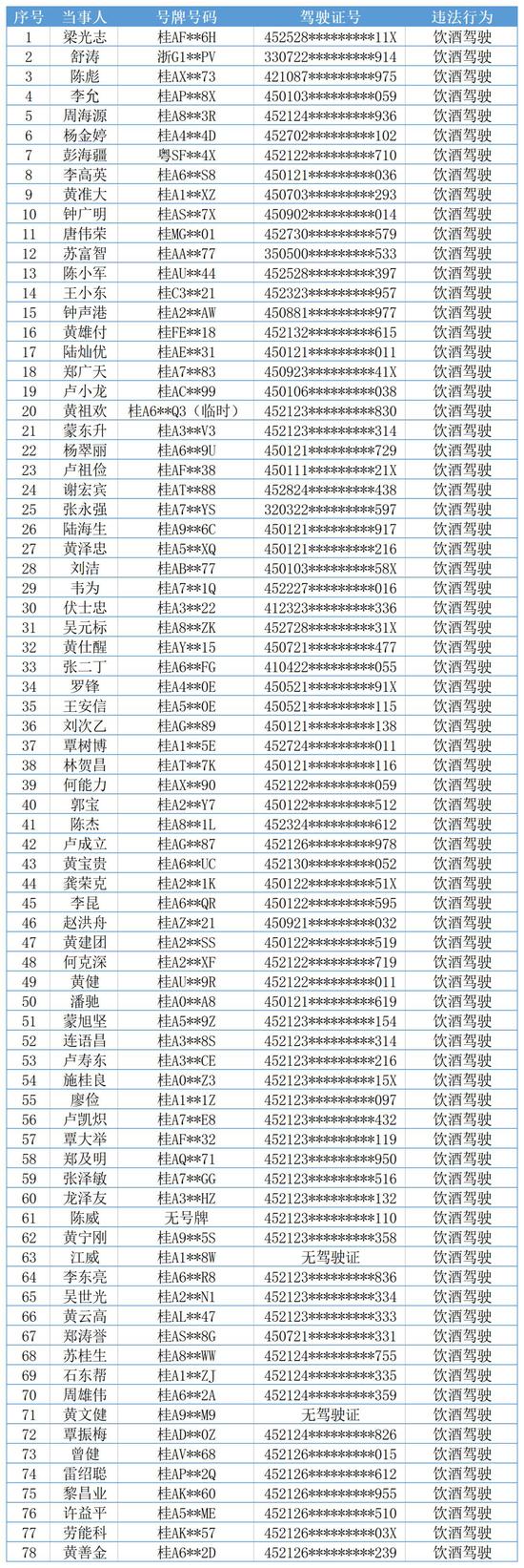 ![]() 3月20日晚至21日凌晨 南宁交警开展了交通安全整治 “子夜行动” 一个晚上共查处酒驾醉驾违法 107起 ![]() ![]() ![]() ![]() 这些驾驶人不把他人 生命财产安全当回事 实在太可恶 ![]() ![]() 先曝光一轮 再跟你们理论! 3月20日21时至21日凌晨4时 醉驾机动车违法一览表 ![]() 3月20日21时至21日凌晨4时 饮酒后驾驶机动车违法一览表 ![]() 3月20日21时至21日凌晨4时 醉驾非机动车违法一览表 ![]() ![]() 01 丢丑的“第一名” 3月21日凌晨0点30分,马山县公安局交警大队民警在210国道汇龙十字路口查处一起醉驾违法行为,经现场呼气检测,驾驶人蓝某体内酒精含量高达267mg/100ml,这也是此次夜查行动中酒精检测值的“第一名”,丢丑! 经讯问,蓝某称在白山镇上龙村一朋友家里喝了三杯农家自酿的“土茅台”,散席后独自驾车回县城,结果半路被交警查获。 02 喝得“刚刚好” 3月20日21点18分,一辆白色小汽车在良庆区五象银海路口被执勤交警拦下检查,驾驶人谢某在呼气检测时神情紧张,结果显示其体内酒精含量为20mg/100ml,刚好达到酒驾标准。谢某大呼后悔,连称自己才“喝了一点点”,“头脑很清醒”,心存侥幸驾车上路,但法不容情,处罚没商量! 03 查酒驾没有“内外之分” 3月21日凌晨0点,一辆“粤B”号牌的小汽车临近五象金象路口检查点时,突然放缓了车速,这一异常举动引起了执勤交警的警觉。民警将该车拦停检查,发现驾驶人莫某满脸通红,一身酒气,经检测其体内酒精含量达到134 mg/100ml,涉嫌醉酒驾驶。莫某还辩称,自己刚从外地回来,“不知道情况”,认为交警半夜不会上路查车。蜀黍告诉你,查酒驾不分“外地媳妇本地郎”,全天24小时各大路口候着呢! 04 非机动车也得守“规矩” 3月21日凌晨2点15分,在宾阳县城武陵转盘路段,一辆电动自行车蛇形行驶,摇摇晃晃,被执勤交警拦下,经呼气检测,该电动自行车驾驶人体内酒精含量为169mg/100ml,涉嫌醉酒驾驶非机动车。驾驶人莫某称,他当晚吃烧烤时喝了啤酒,越喝越兴起,骑车准备再去买点下酒菜,“没想到”酒驾电动自行车也“挨嘢”。这回长记性了:醉酒驾驶非机动车同样违法,依法予以罚款50元。更要命的是,危险! 05 慌不择路逃不掉 3月20日21时54分许,一辆黑色吉普SUV从星光立交驶往大沙田方向,看见前方有交警检查,立刻拐到路边停车躲避。当民警上前查看,要求驾驶人出示证件时,其突然加速倒车逃逸,结果很快就被布控的警力截停。 经检测,驾驶人潘某体内酒精含量为159mg/100ml,远超醉驾标准。潘某承认,由于“憋”了太久,当晚在跟朋友聚会时“忍不住”喝了两瓶啤酒,在驾车送朋友回家路上,看到有交警检查想逃避,实在是害怕受到处罚。没错,等待他的将是法律严惩! 06 舍不得请代驾的“代价” 3 月21日凌晨1时许,李某驾驶小轿车行经厢竹大道时被交警查获,经检测其体内酒精含量为61mg/100ml,属于饮酒后驾驶。原来当晚他在朋友家吃晚饭,经不住劝喝了2瓶啤酒,本打算请代驾,但是觉得划不来,自己家也住得近,怀着侥幸心理开车上路,结果现在被罚款1000元,驾驶证记12分并暂扣6个月,这“代价”太大了! ![]() ![]() ![]() ![]() 据统计,此次统一行动期间,南宁交警共出动警力1980人次,警车596辆次,设置整治点68个,查处机动车酒驾醉驾违法行为105起,其中醉酒驾驶27起,查处非机动车醉酒驾驶2起,其他交通违法行为315起。 ![]() ![]() ![]() ![]() ![]() 随着新冠肺炎疫情防控形势持续向好,交通运输秩序、生产生活秩序加快恢复,道路交通安全风险上升,特别是随着餐饮服务等场所陆续营业,群众休闲消费活动增加,酒驾醉驾违法抬头、肇事肇祸多发。 ![]() ![]() ![]() ![]() ![]() 南宁交警集中开展“子夜行动”和周末夜查统一行动,严查酒驾醉驾等严重违法行为,遏制酒驾醉驾多发势头,稳定全市道路交通安全形势。 来源:南宁交警微发布
